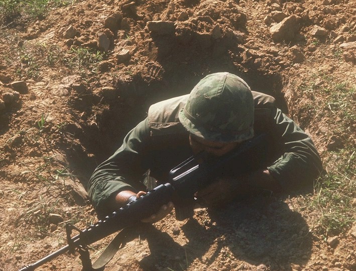 When I first got here they issued me an M-16 rifle with about 120 rounds of ammunition. I hope that I will never have to use it but it's a damn nice weapon.