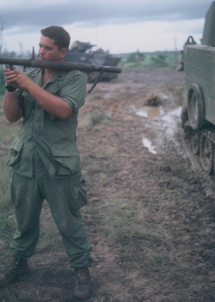 In your last letter Dad you got the impression that I was "assigned" as a gunner on an ACAV. You misunderstood me. When I'm in the field the only way that I can get around is to ride on an ACAV. Consequently, 4-0 (Four Zero) track is the one that I ride on. It only as one assigned gunner therefore I ride behind the right M-60 machine gun when we are on the move. I was never told by anyone to do this, I just did it to help these guys out. I an not required to pull cupola guard either buy I volunteer to do this also in order to help out. Here, everyone helps everyone else. These guys help me with rations and putting out the meal so I help them whenever I can. It works out quite nicely.