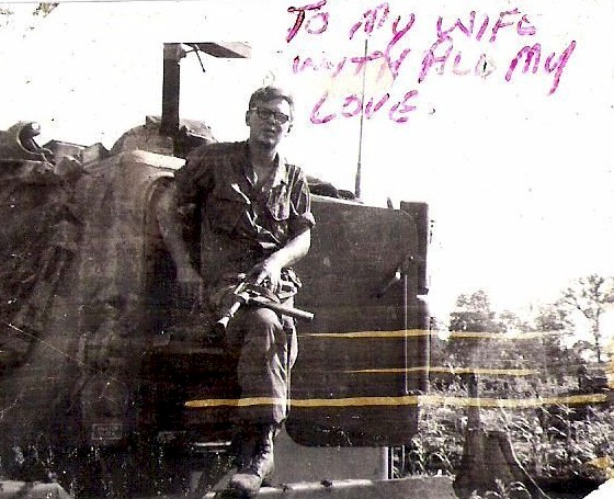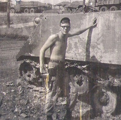 Errol standing in front of his very muddy ACAV