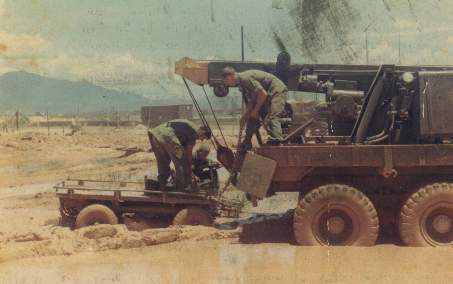 E-5 Jerry Orr now lives in St. Clairsville, Ohio. He served with the 528th QM Company while in Vung Tau and Phu Bai. The 528th QM Company was my assignment on my second Vietnam tour of duty. I arrived at the Company in May of 1969 and departed in November of 1969. I served in both Vung Tau and Phu Bai. Jerry has submitted these photos.Stuck in the mud.
