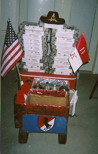 Dan Stroia began a pilot program over 3 years ago at the VA hospital in Phoenix, Arizona. The program provides pizza and soda pop to the veteran patients at the Phoenix hospital. Dan would like to take his program nation wide and invites all members of the 11th Cavalry's Veteran Troopers of Vietnam and Cambodia to join him in providing in their area VA hospitalized veterans with pizza & soda pop.If you would like to share in this very worthwhile project and put tons of smiles on our fellow veteran patients faces then contact Dan and he will give you all the details that you will need to begin a Thunder Run Pizza Run at your area VA hospital. Dan says that the only cost to you would be your time. Funds for the program may be provided by veterans organizations such as the DAV, VFW, American Legion and others. For additional information visit here and look for entries 474 through 478.