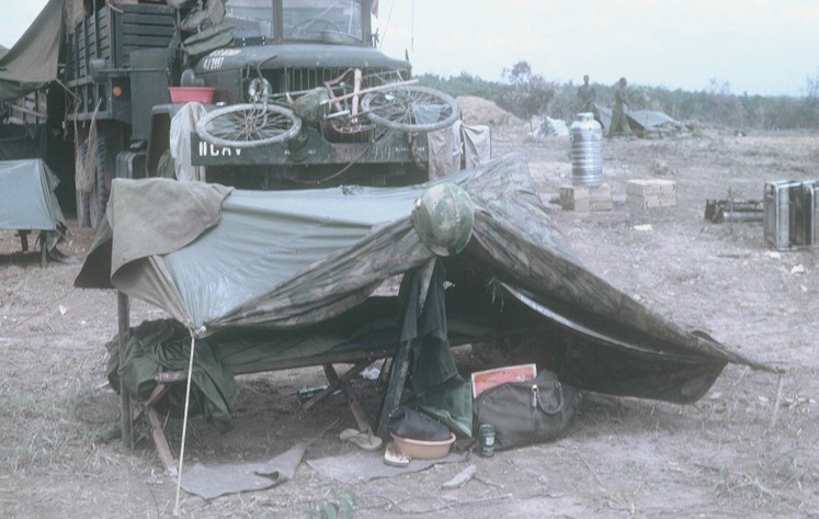 Time is going by fast, especially here in the field. I have started to get my tan back. I really look good. I have lost a little weight and I am feeling better. My face has cleared up considerably. I think that it is due to the sun and heat. It's really hot now in the day time. It gets up in the high 90s. It gets quite cold at night and in the early morning - in the low 40s. We sweat to death in the day and freeze at night. I use a sleeping bag, a blanket and a poncho liner to keep warm. I like it out in the field. It's a lot of work but time goes by faster.